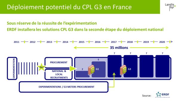 Les compteurs Linky installés à partir de 2017 utiliseront la norme CPL G3. Rennes fera partie des premières communes équipées du compteur en CPL G3 car le déploiement sur la capitale bretonne est prévu à partir de mars 2017.