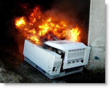 (Heureusement, nous n´avons pas eu de flammes comme sur cette photo récupérée sur internet Mais le moteur de l´imprimante était déjà complètement fondu au moment où nous avons débranché l´imprimante)