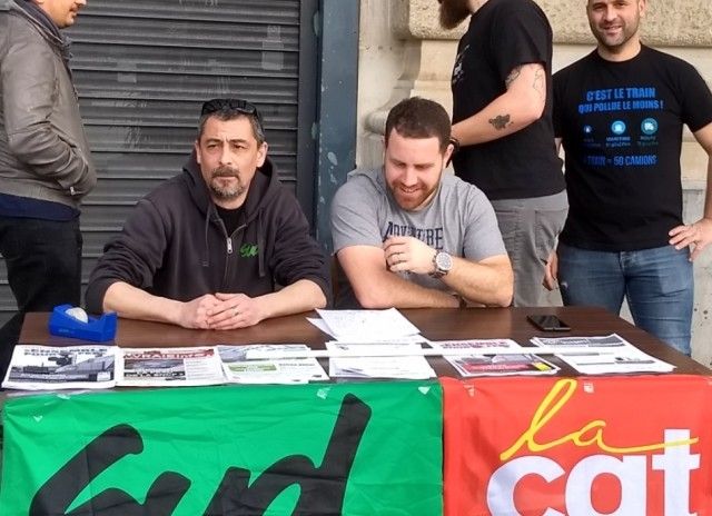 Peio DUFAU à droite sur la photo, CGT Cheminots, lors d’une conférence de presse à la Gare e de Bayonne.
