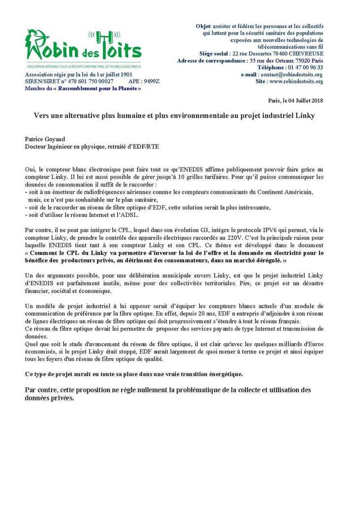 - Courrier 2018 : Linky, demande aux parlementaires, avec en pièces jointes les 2 documents suivants :