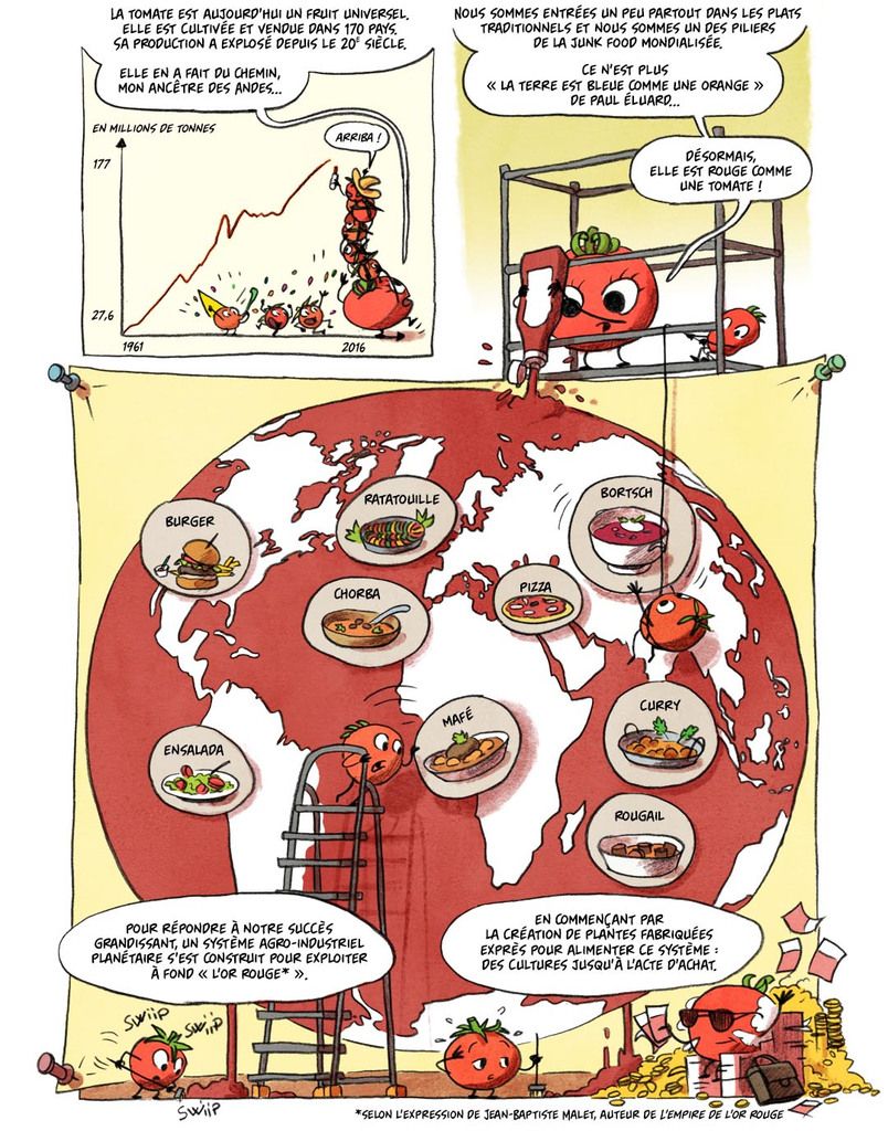 Puis c’est l’essor de l’industrie de la tomate sous l’impulsion d’Henry John Heinz, l’inventeur du ketchup et… du pire du capitalisme. « Quand nous pensons au début du taylorisme, notre imaginaire nous renvoie l’image d’hommes suant sur les chaînes automobiles. Pourtant, les ouvrières des conserveries Heinz ont elles aussi connu les cadences infernales, les accidents, la violence de cette organisation du travail », explique Jean-Baptiste Malet, auteur de L’empire de l’or rouge, aux éditions Fayard. On peut lire ses propos notamment ici et là.