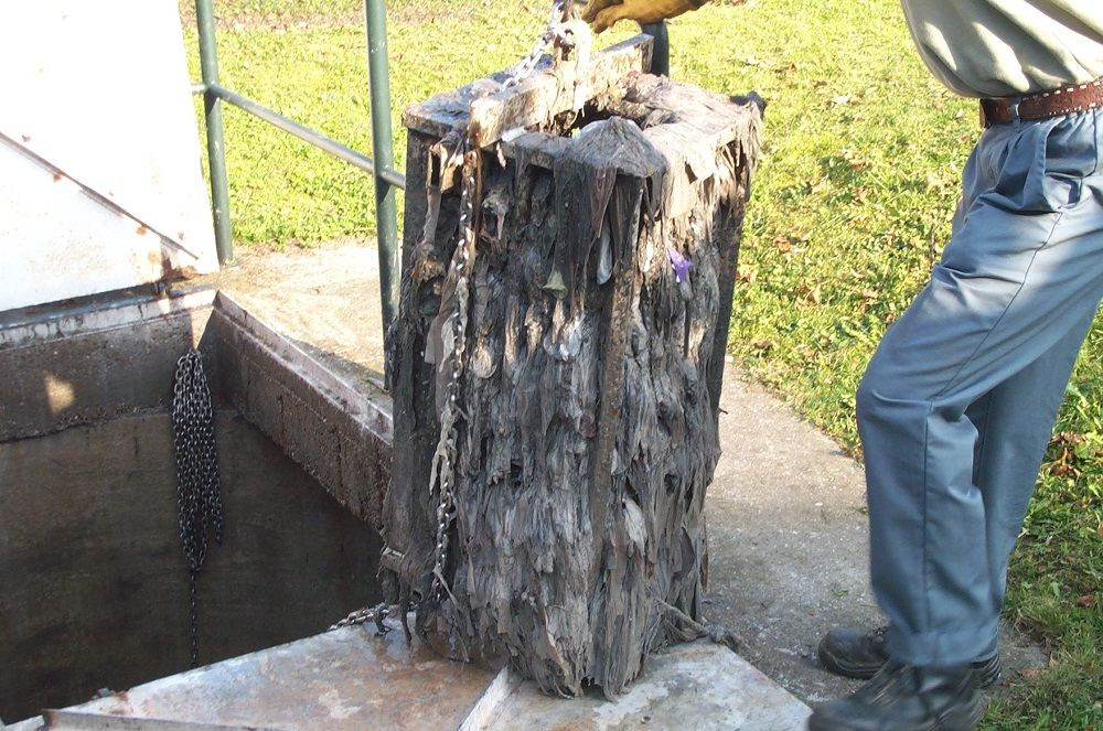 Une station de relevage d’eaux usées complètement bouchée par les lingettes à Colmar.